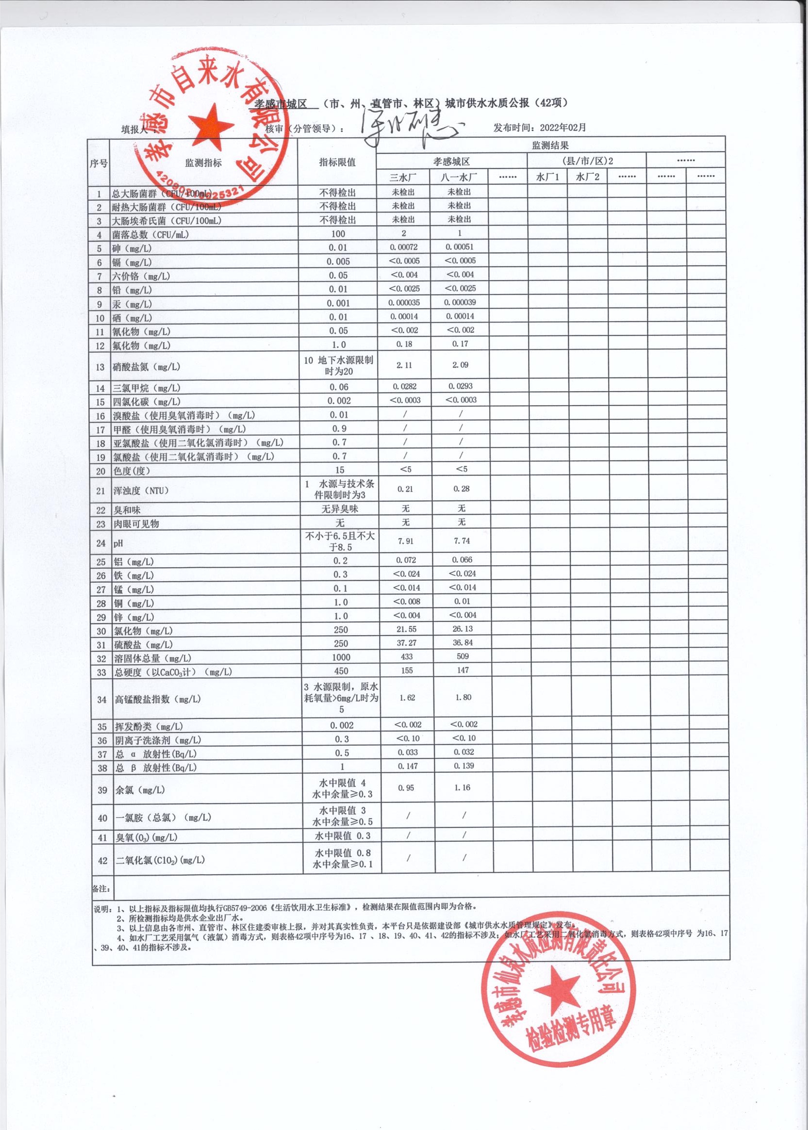 2022年2月水质报告