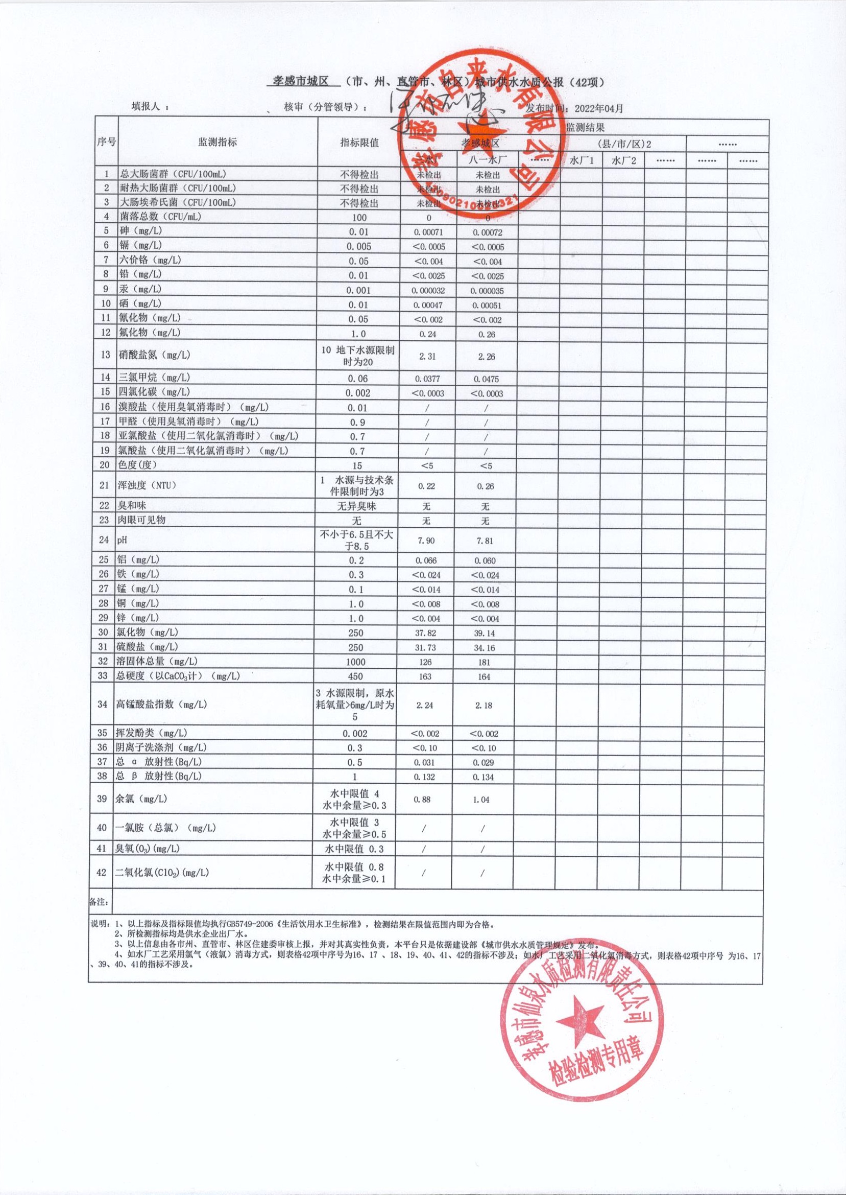 2022年4月水质报告