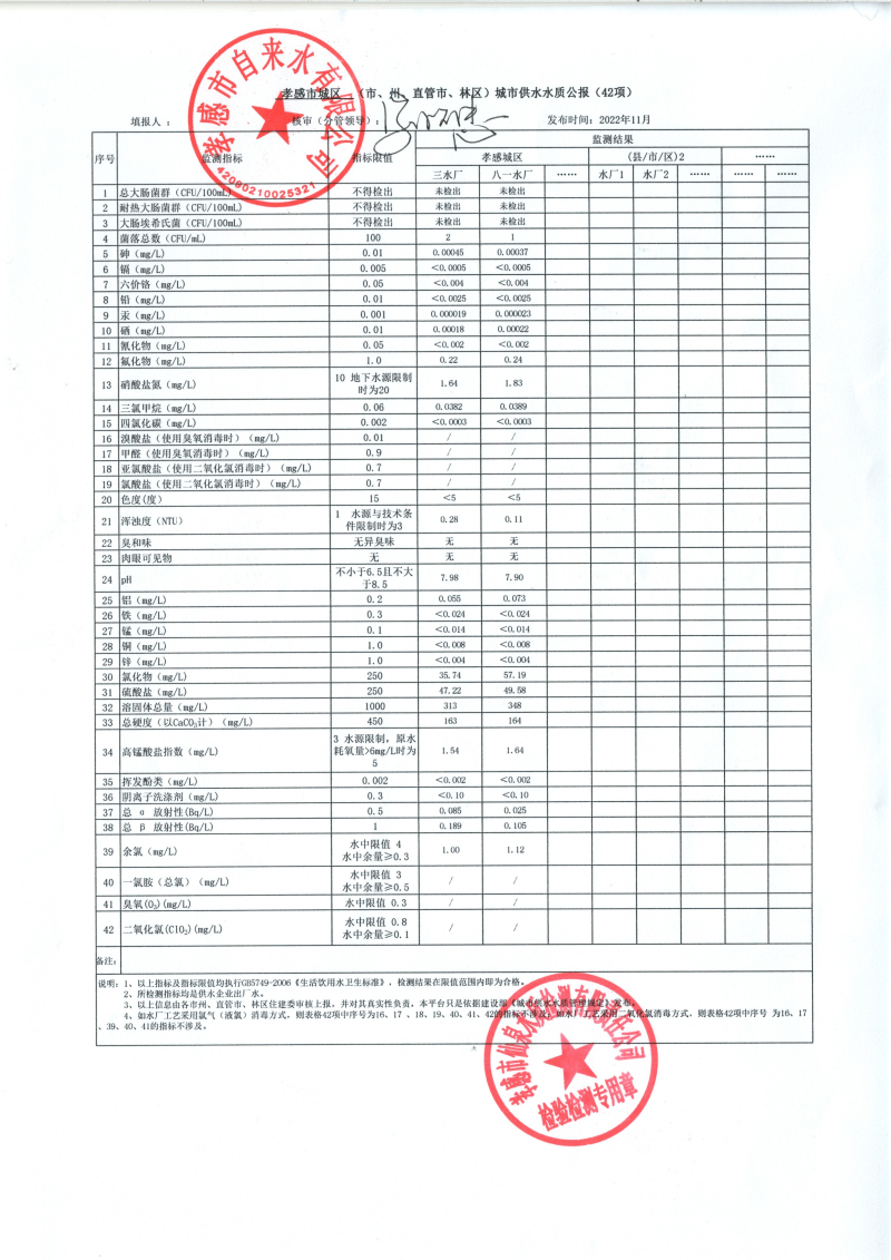 2022年11月水质报告