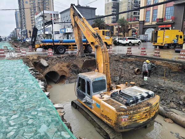 3 月 3 日下午三点二十五分,MK体育·(国际)官方网站接到市民反映,孝武大道久尊酒店门口出现管网漏水情况。经调查,此次管网漏水,是由于道路施工开挖作业中存在违规操作。施工方致使供水管网暴露在外,却未进行任何加固处理。作业坑道在大雨的持续冲刷下发生了滑坡现象。最终,在滑坡产生的强大外力作用下,该地段两根DN400水泥管脱头,进而引发了管网漏水问题。