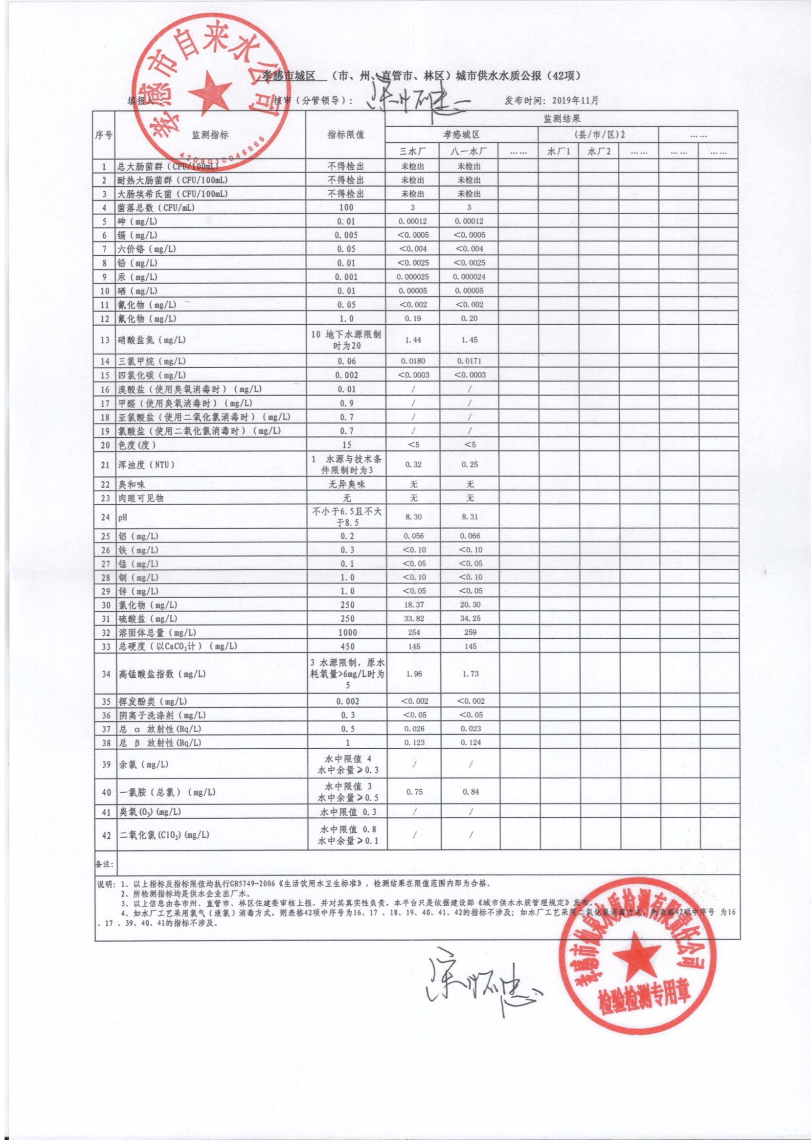 2019年11月水质报告
