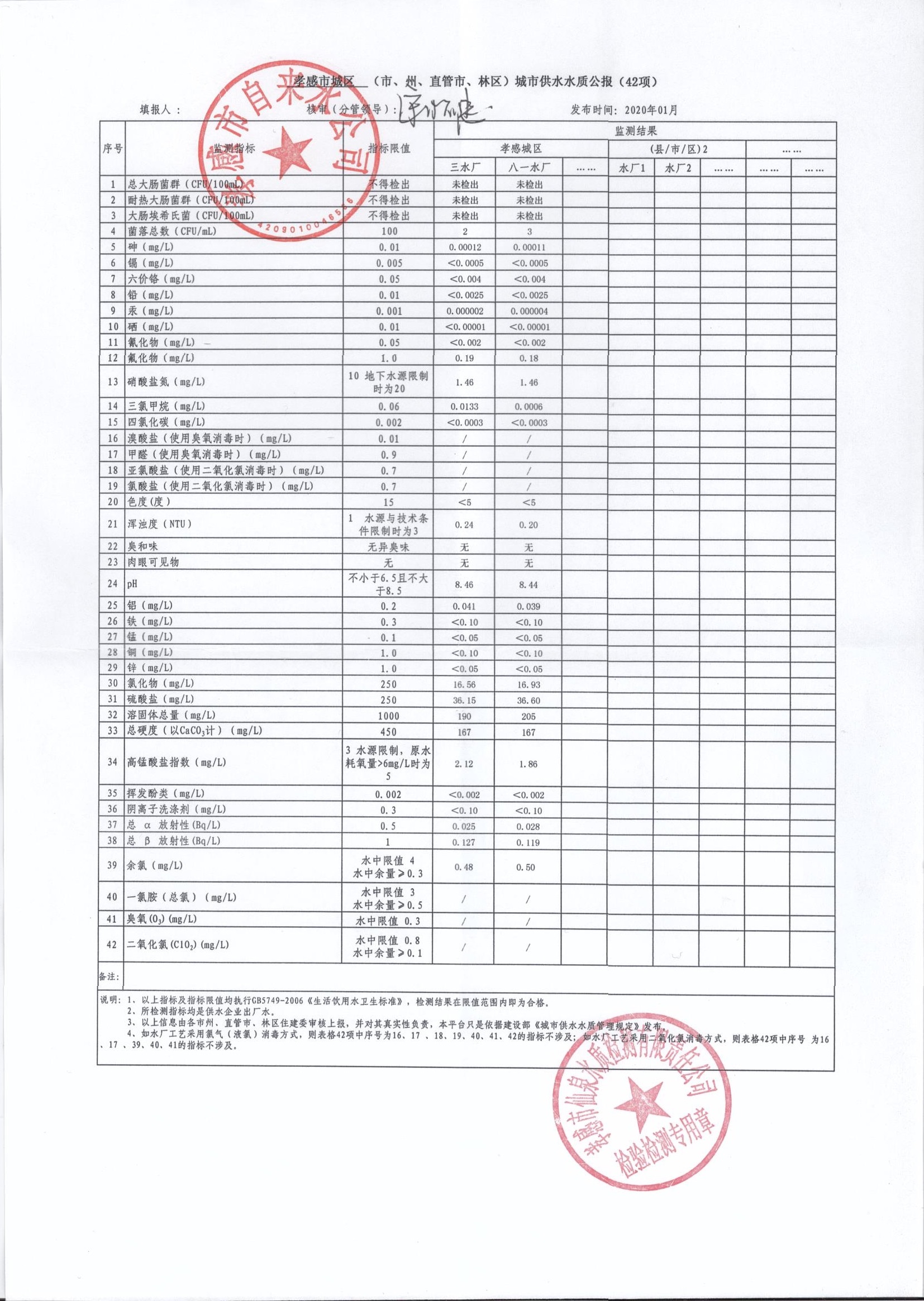 2020年1月水质报告