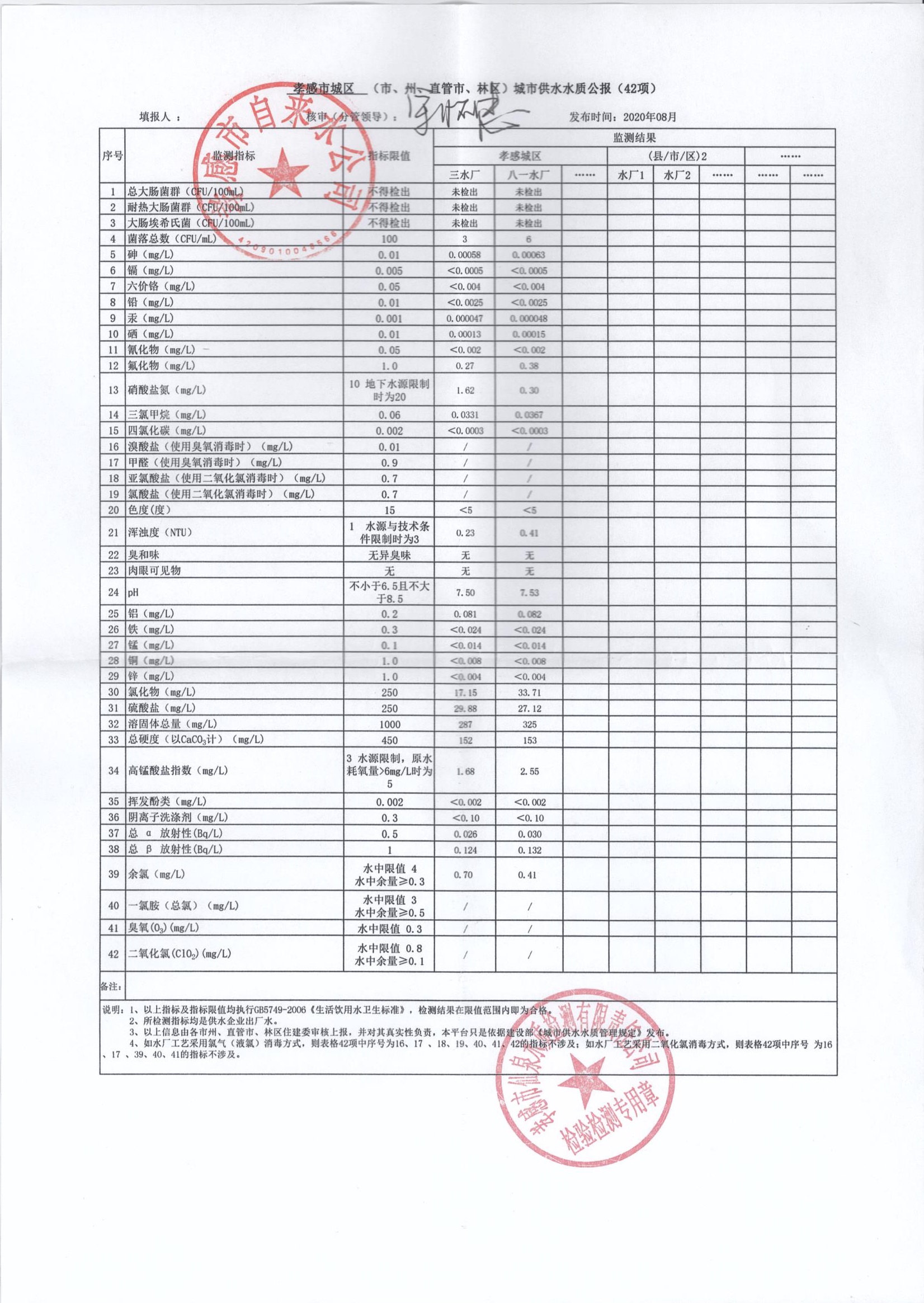 2020年8月水质报告